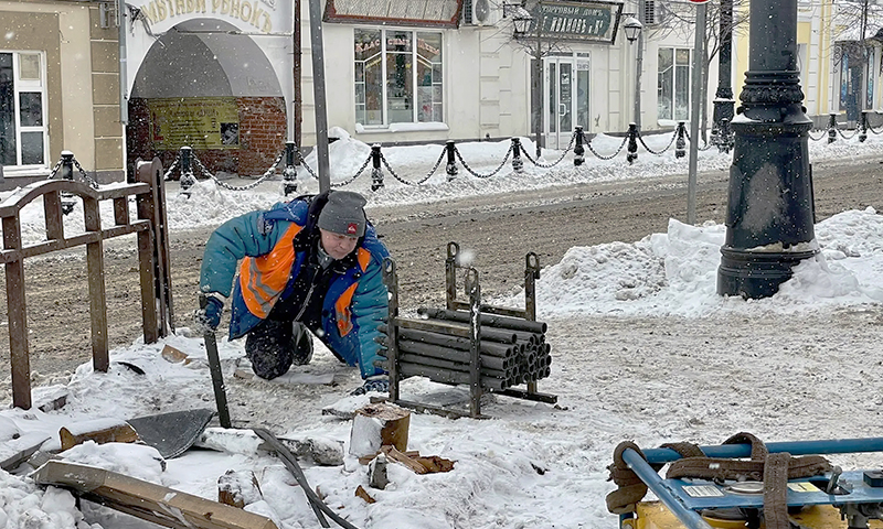 Эти работы проводятся в рамках создания пешеходной зоны в центральной исторической части Рыбинска.