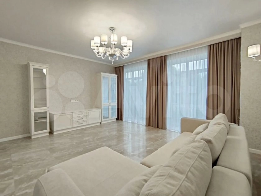 Отдельного внимания заслуживает отделка. По всей квартире выполнен дизайнерский ремонт с использованием дорогих материалов. В стоимость включена вся итальянская мебель из натурального дерева, встроенная бытовая техника — стиральная и посудомоечная машины, а также эксклюзивные люстры, светильники и шторы. По сути, покупатель получает готовое жильё, в которое можно въехать с одним чемоданом.