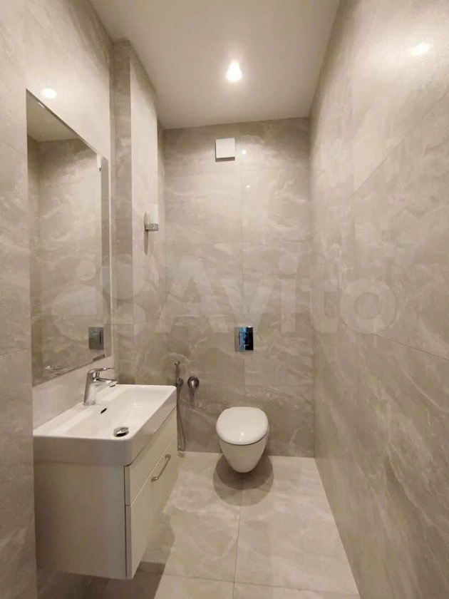 Потолки высотой три метра и панорамное остекление в гостиной создают ощущение простора и наполняют помещение естественным светом. Планировка продуманная: четыре изолированные комнаты площадью от 14 до 23 квадратных метров, просторная прихожая на 21,7 кв. м, гардеробная на 11,2 кв. м, кухня площадью 16,6 кв. м, раздельный санузел и два балкона. В кухне, ванной и прихожей смонтирована система тёплых полов.